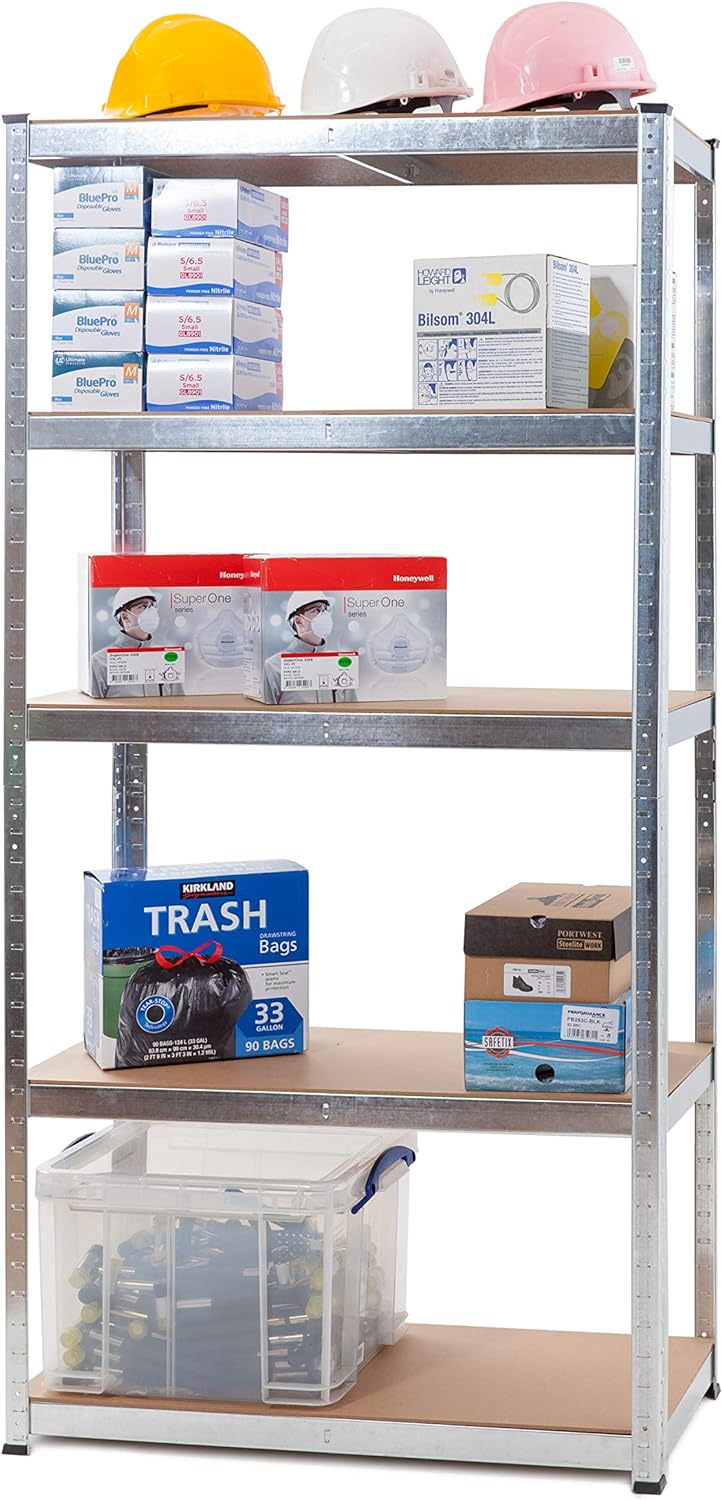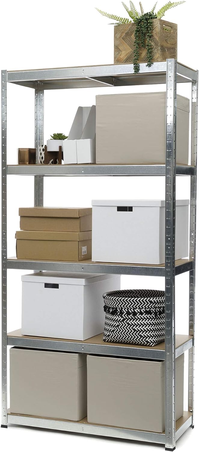 1 × 5-Tier Galvanized Steel Shelf with MDF Boards (DIY Assembly)