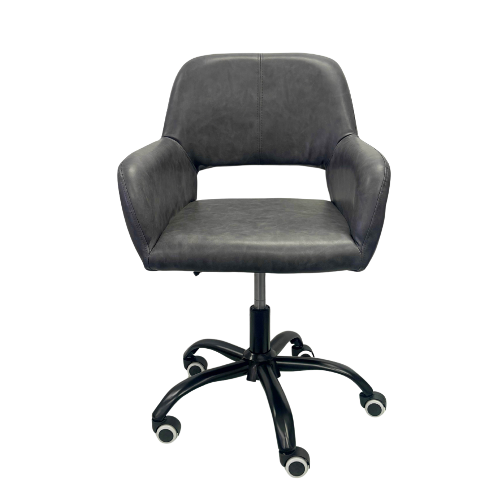 A durable chrome base, height adjustment feature and durable casters complete the elements of modern sophistication. The grey upholstered velvet and flared armrests and vacuum on the backrest offer comfort. A durable chrome base, height adjustment feature and durable casters complete the elements of modern sophistication. The navy blue upholstered velvet and flared armrests and vacuum on the backrest offer comfort.