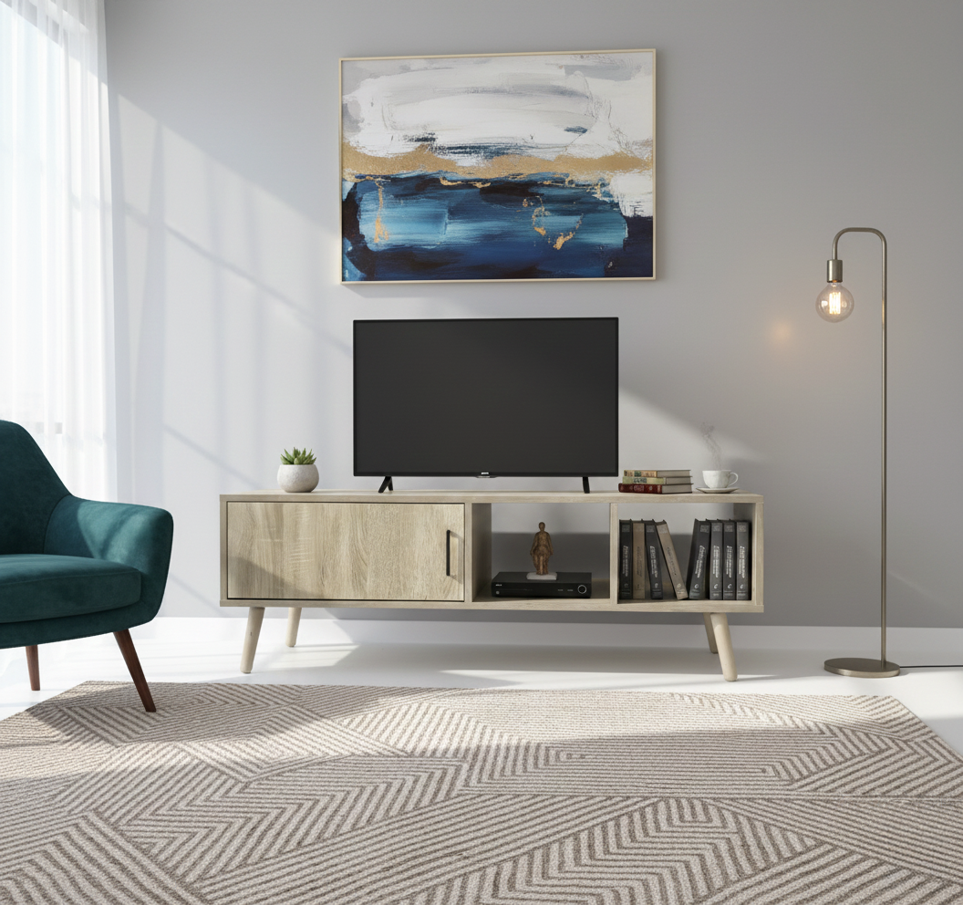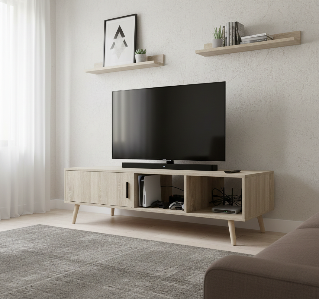120 cm width provides a practical platform for medium screens and soundbars without overwhelming the space.