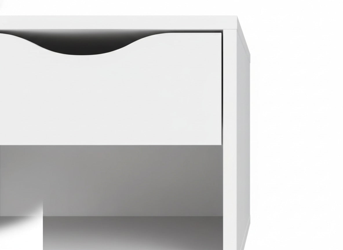 - Drawer Mechanism: Cut-out drawers pull in place of a handle, drawer retracts smoothly on metal glides