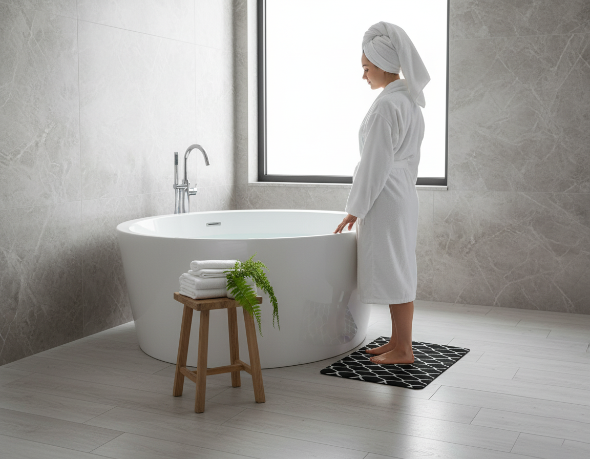 - Super Absorbent: The bath mat quickly absorbs moisture, keeping your feet dry and clean after bathing.