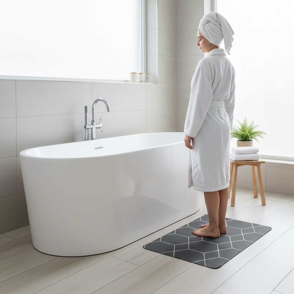 - Super Absorbent: The bath mat quickly absorbs moisture, keeping your feet dry and clean after bathing.