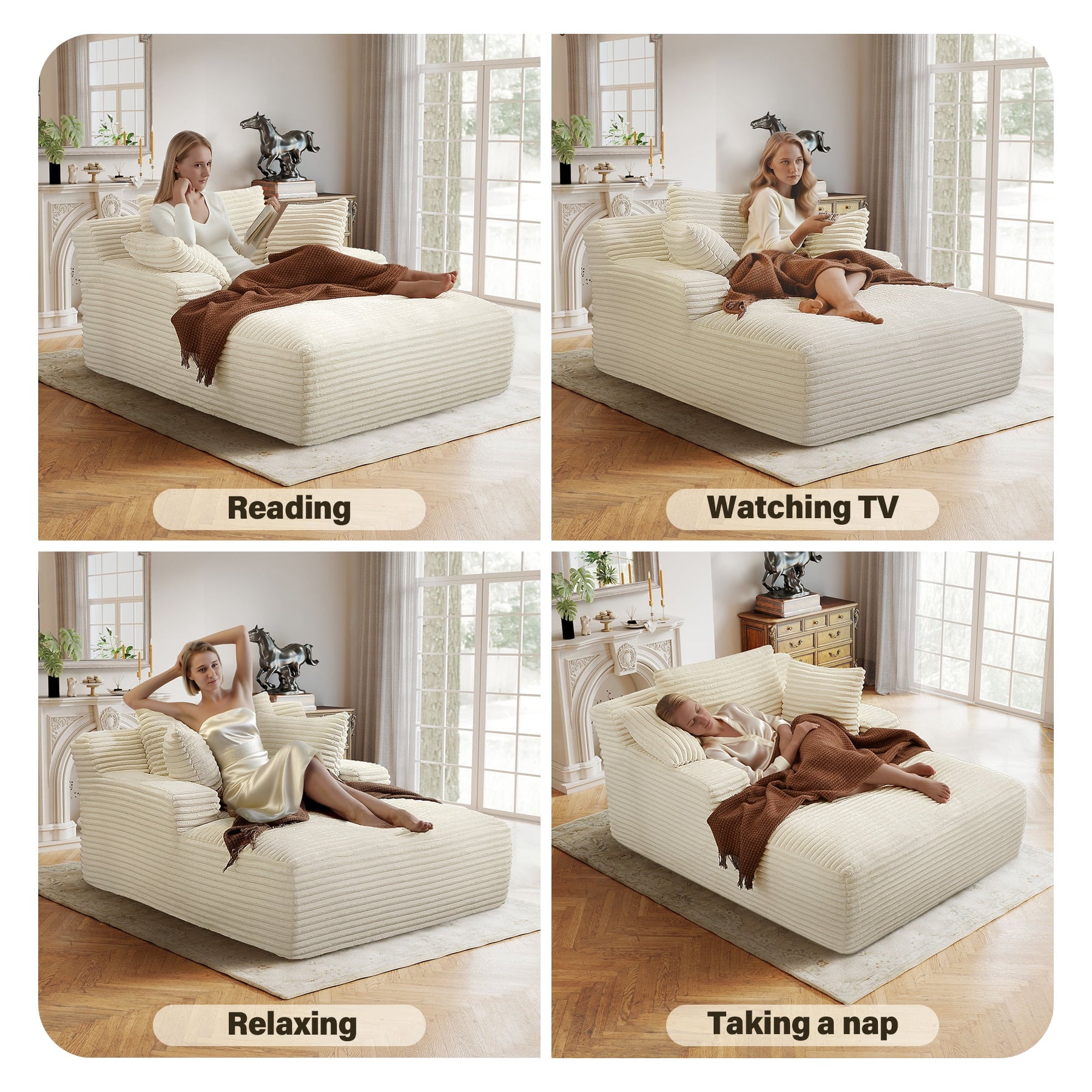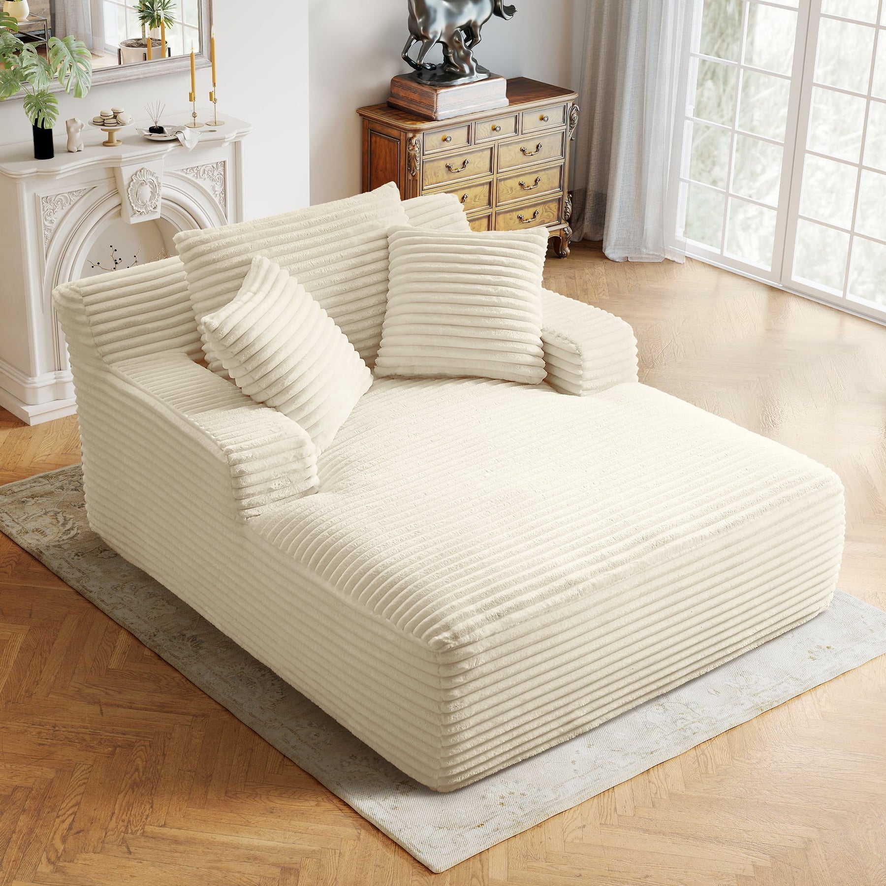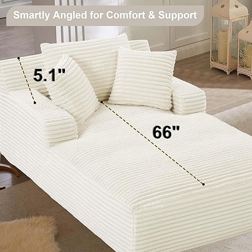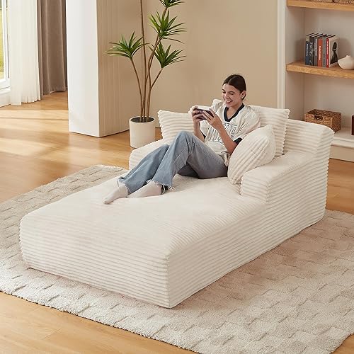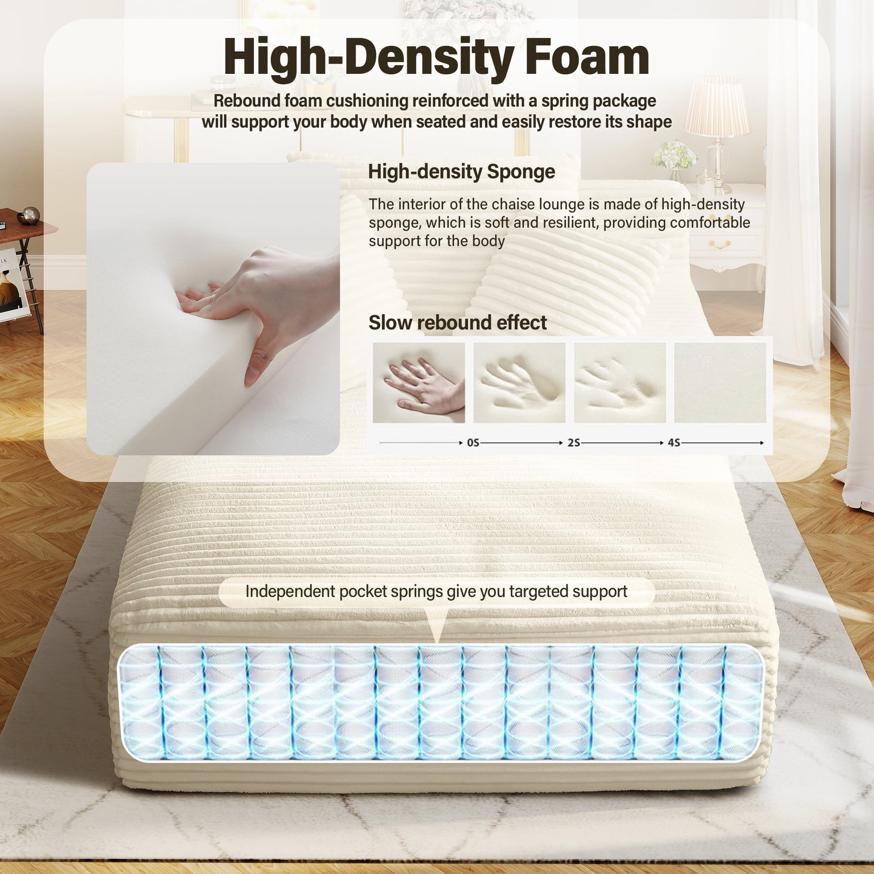 Crafted with soft corduroy fabric featuring a rich ribbed texture, the chaise delivers a plush, luxurious feel. The high-resilience spring cushion system ensures excellent elasticity, preventing sagging and providing long-lasting support for daily use. No tools required—this indoor chaise lounge chair arrives fully assembled. With its sleek design, neutral color, and included pillow, it blends effortlessly into any living room, bedroom, or office setup. Whether used for reading, napping, or adding an elegant accent to your home, this modern lounge chair is a versatile and stylish choice for comfort seekers and home decorators alike.