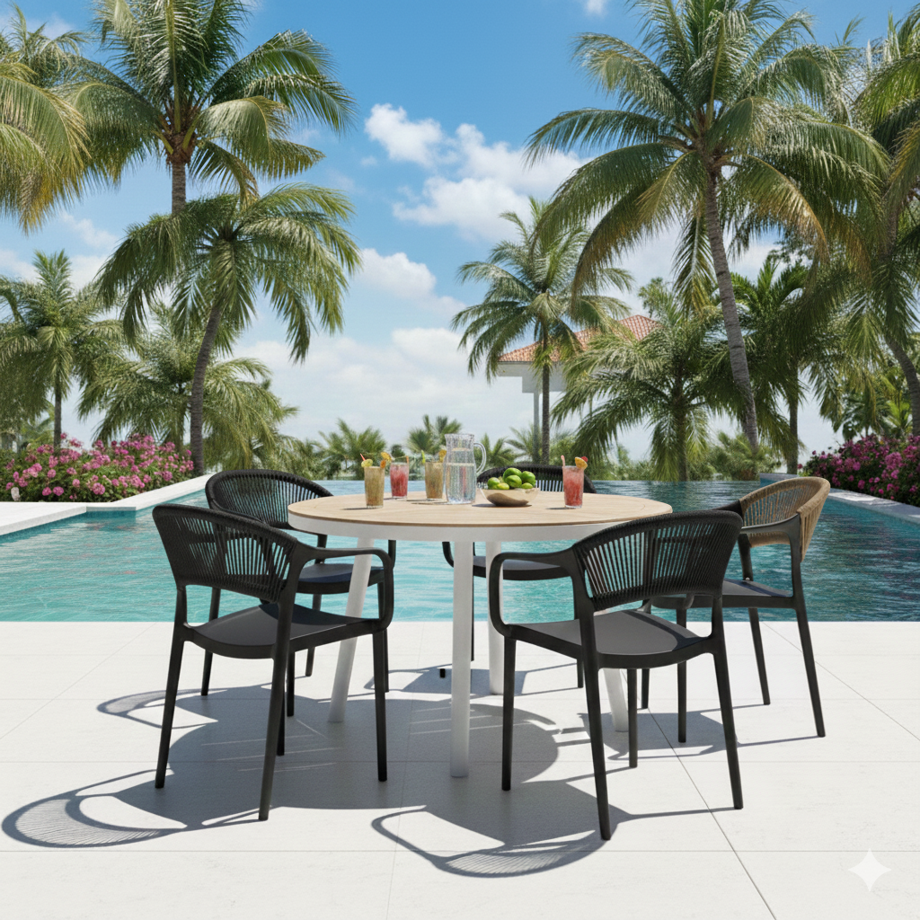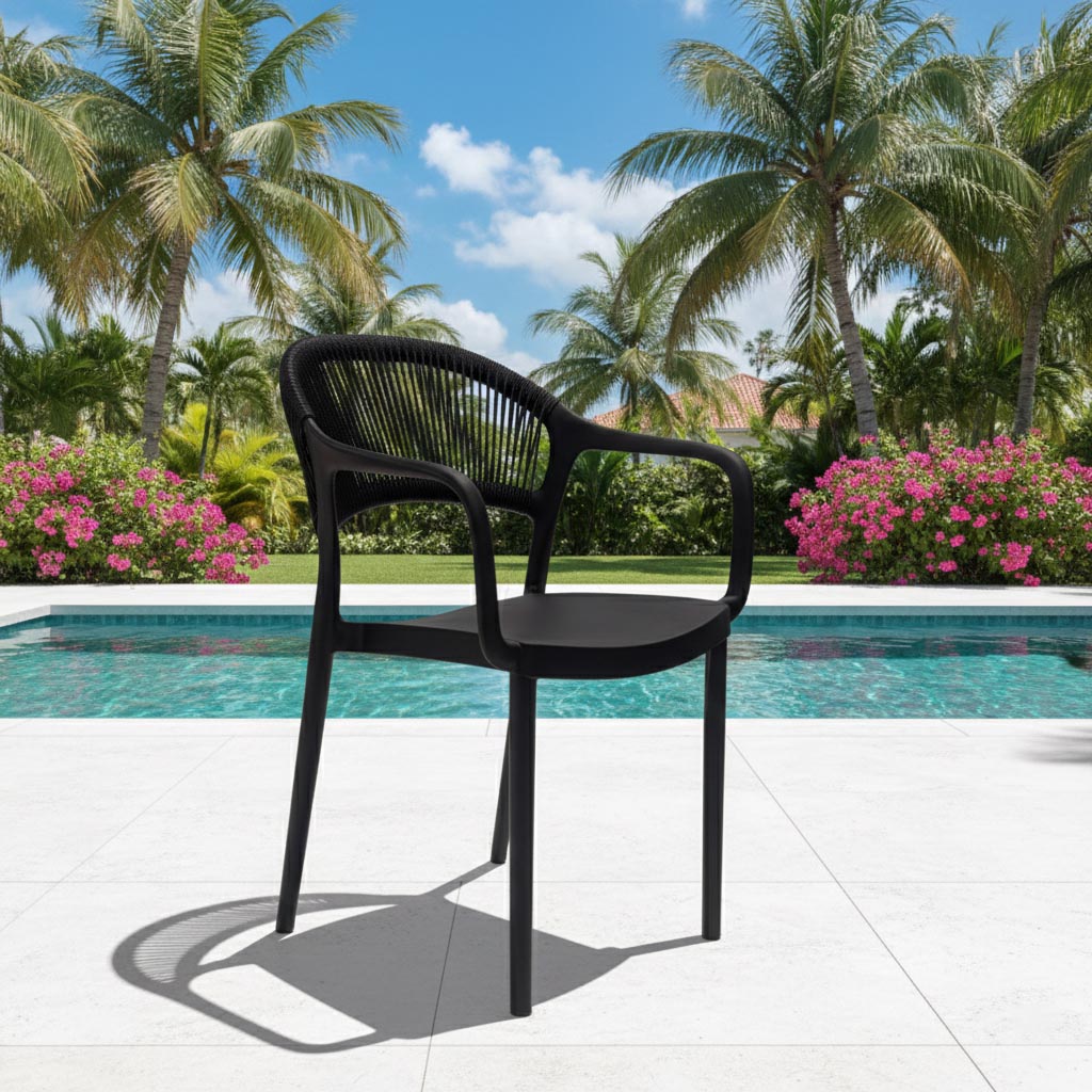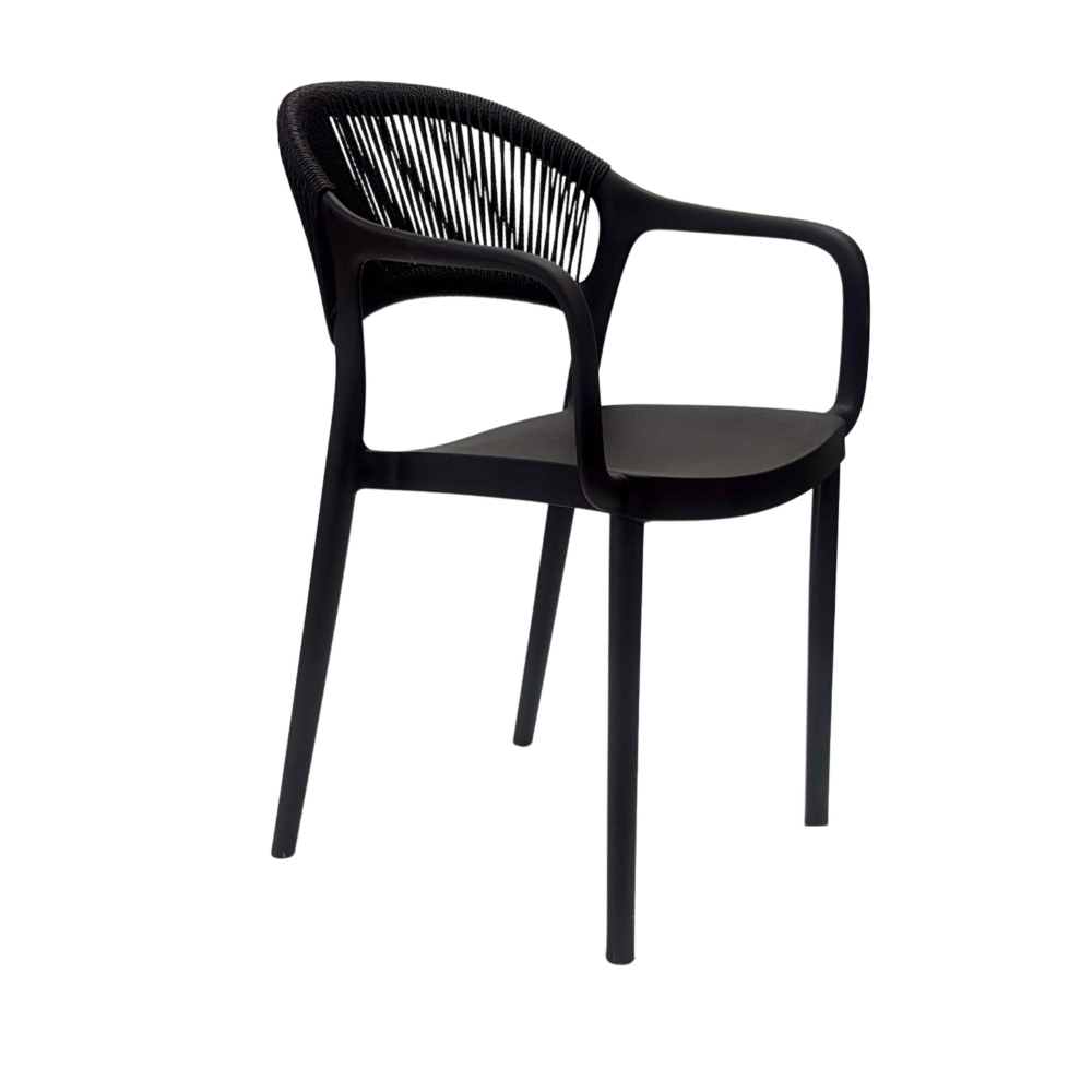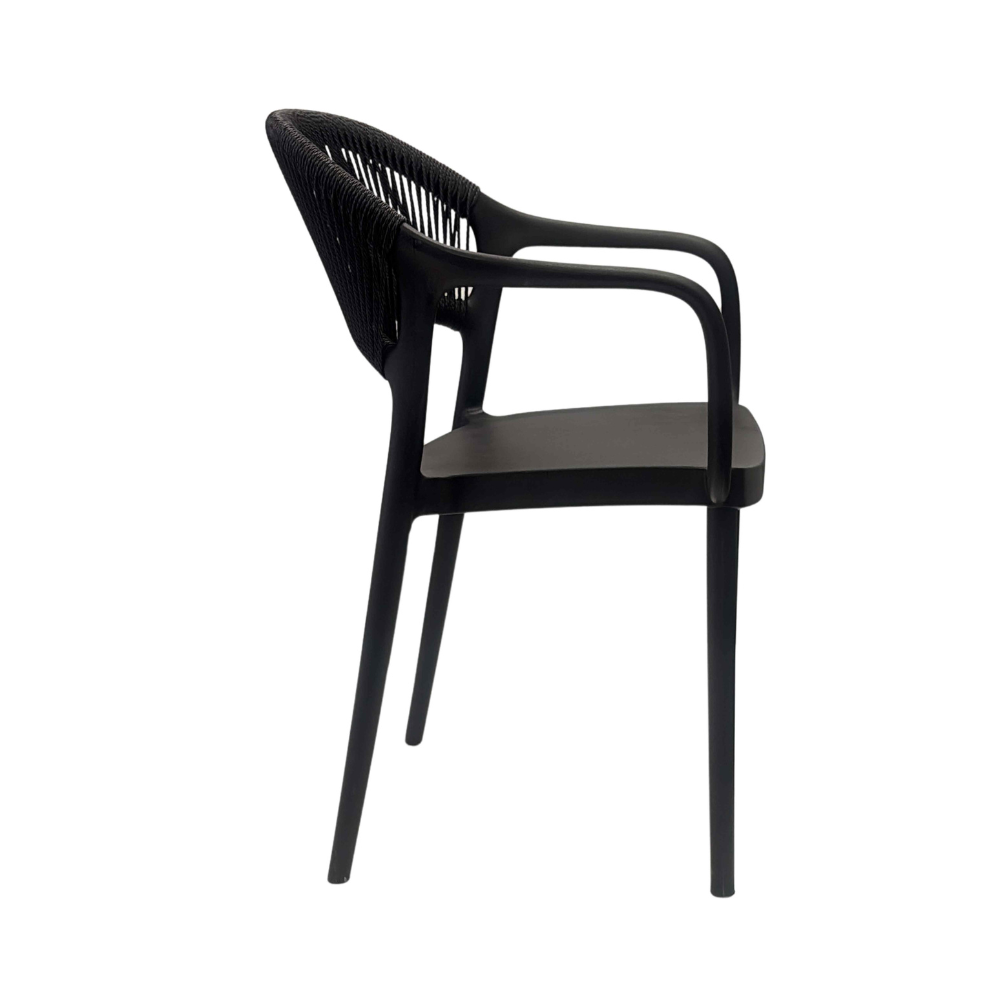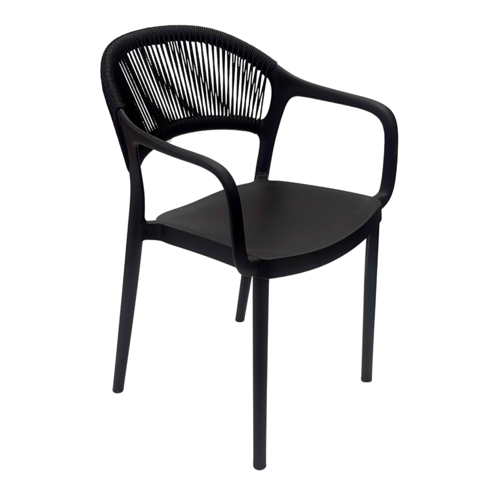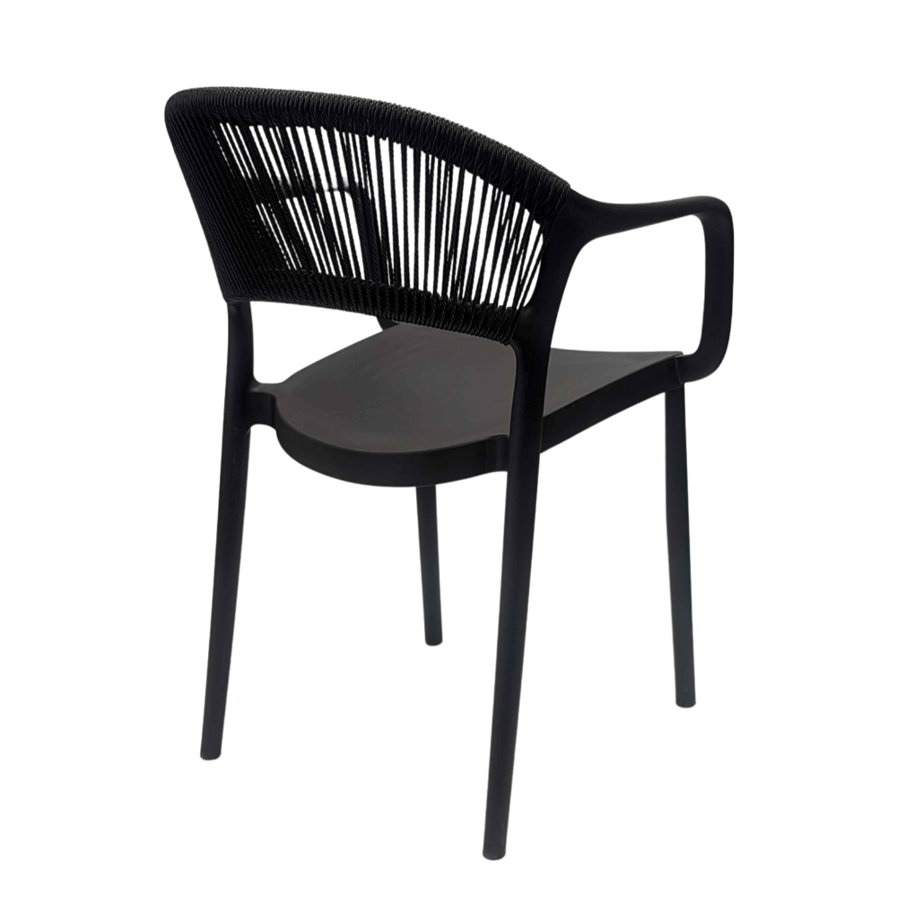 • The armchair has everything you would want from such a piece of furniture. The entire armchair is made of one-piece polypropylene with a slightly curved back upholstered in synthetic (p.p.) rope, and practical arms.