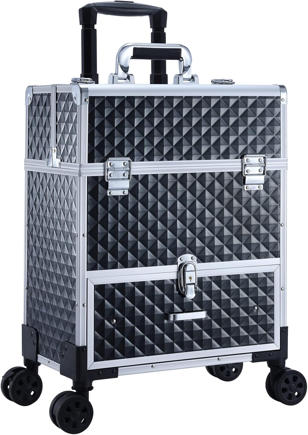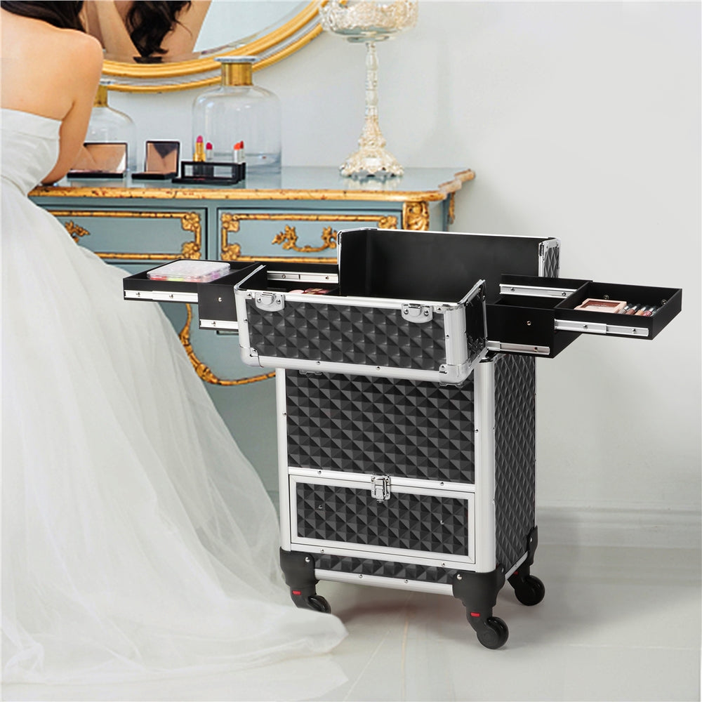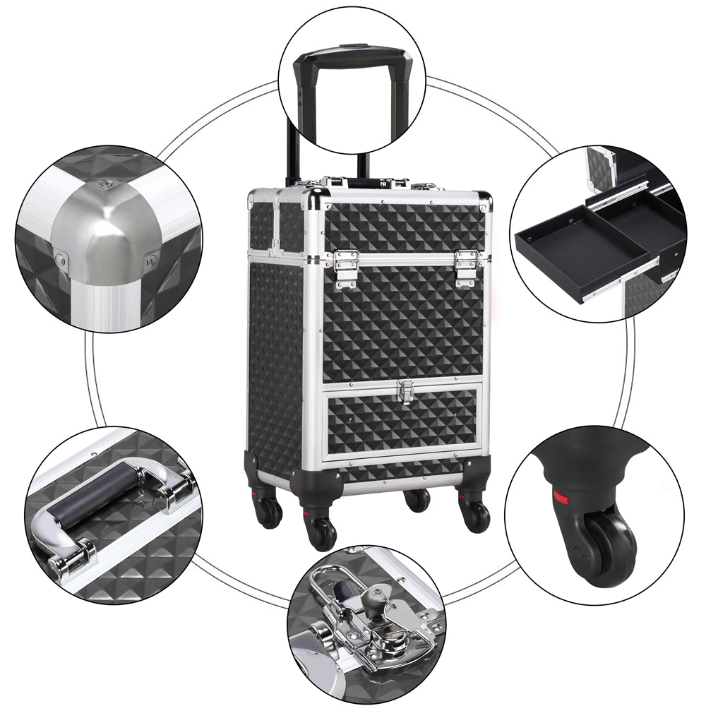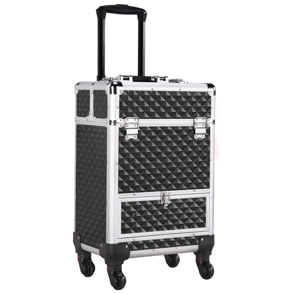 - Charming appearance with practical usage: This makeup case is not only a practical tool but also a fashionable accessory. Waterproof ABS makes this trolley makeup case a perfect protector for your cosmetics when using outdoors. Gleaming ABS veneer and embossed diamond pattern add a layer of dimensional vision beauty to this makeup case.