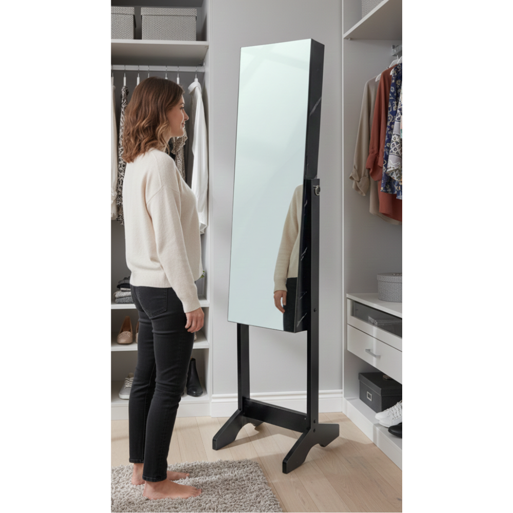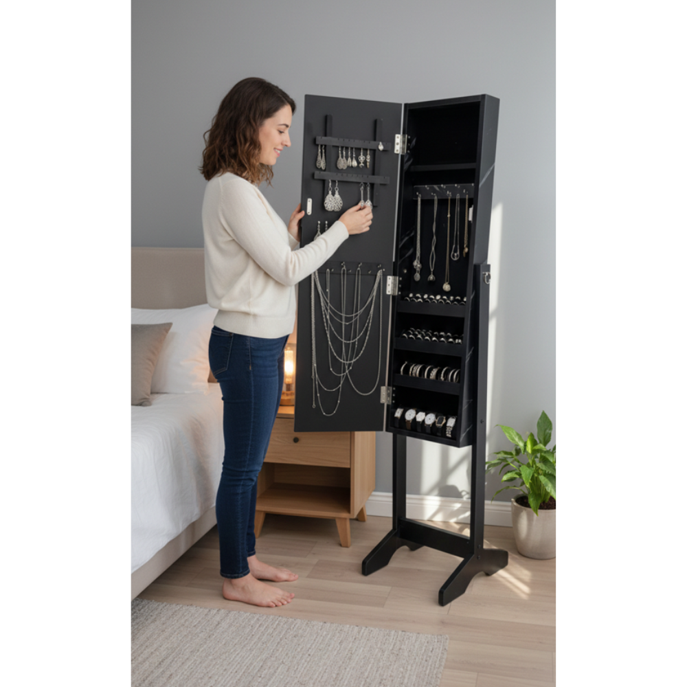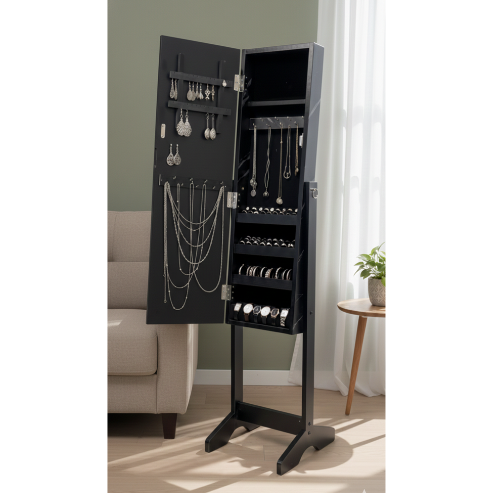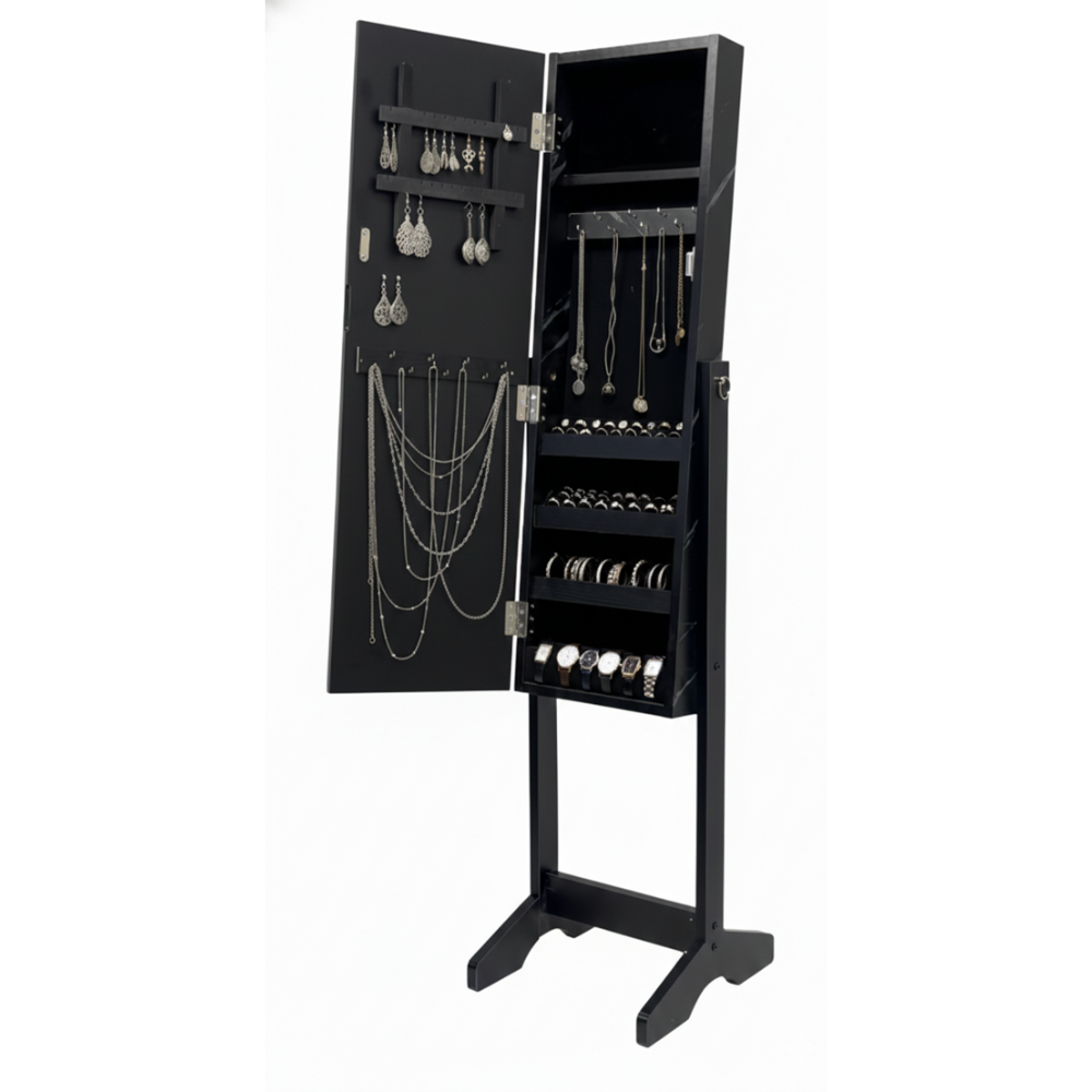 - We combine the full-length mirror and the jewelry cabinet, which not only saves space, but also is beautiful and practical. It can be used as a mirror for your clothes, or as a practical jewelry cabinet to store your everyday jewelry, providing you with a clean and spacious space.