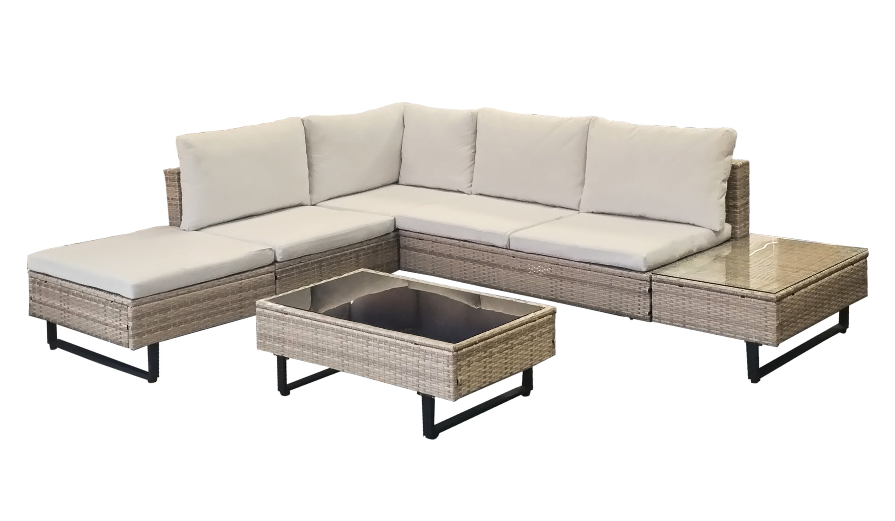 The Rattan Cyprus Corner Patio Set is ideal for making the most of your outdoor space during the summer months. It features a sofa as well as a chaise. At the end of the sofa is a side table in addition to the included coffee table (both with stylish tempered glass tops). The versatile chaise also doubles as a sun lounger - the end cushion lifts up and can be used as a head support.
