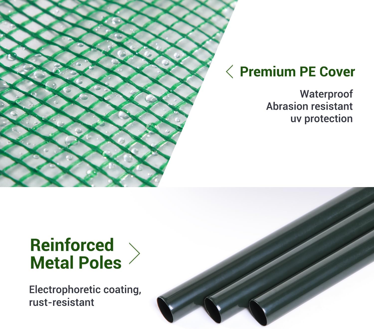 - Material: 16mm steel tube + 130gsm net PE