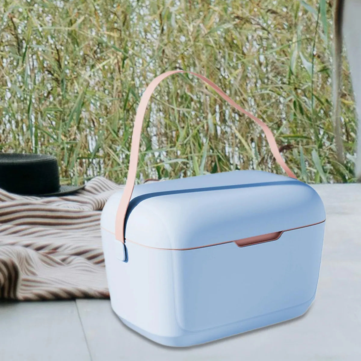 Add some style to your summer collection with the 20L Hard Shell Cooler. Made from polyurethane and pleather, it has a hard shell with an adjustable and detachable pleather strap in a contrasting colour and metal buckles. Great for keeping your food and drinks cool.