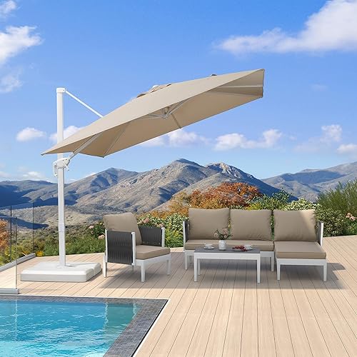 - The patio umbrella is made of all-aluminum frame and assembled with a triangular structure, which can withstand 25MPH winds. The outer layer is antioxidant spray paint, preventing rust and fading.