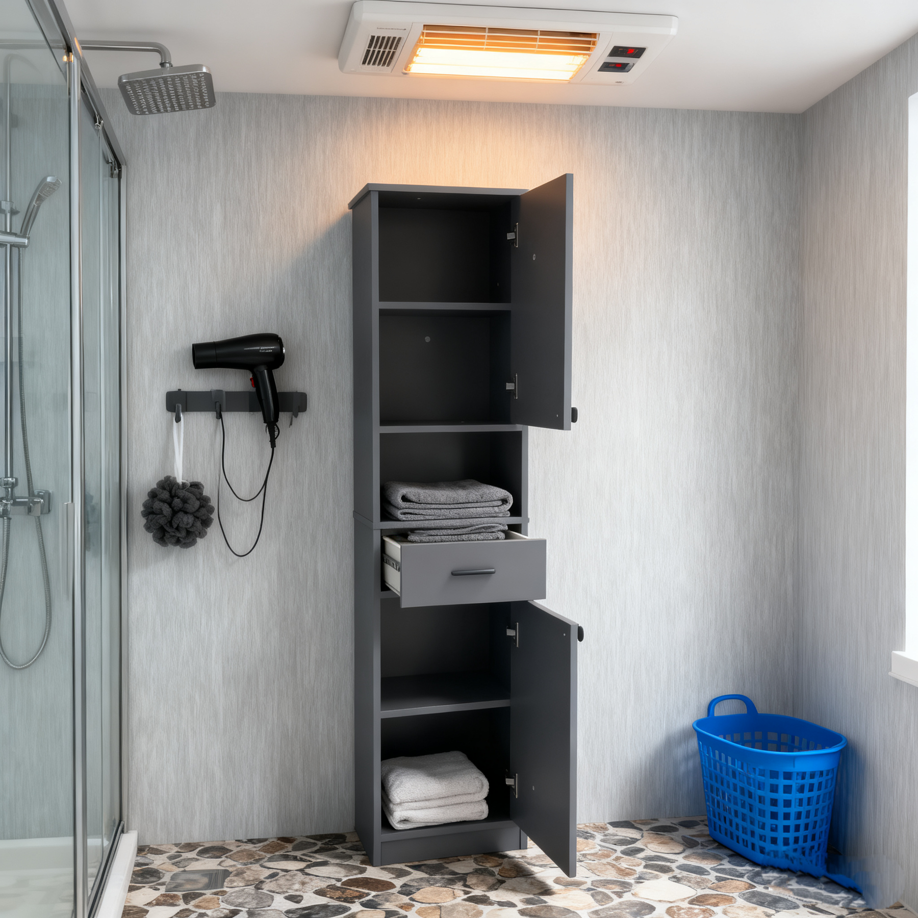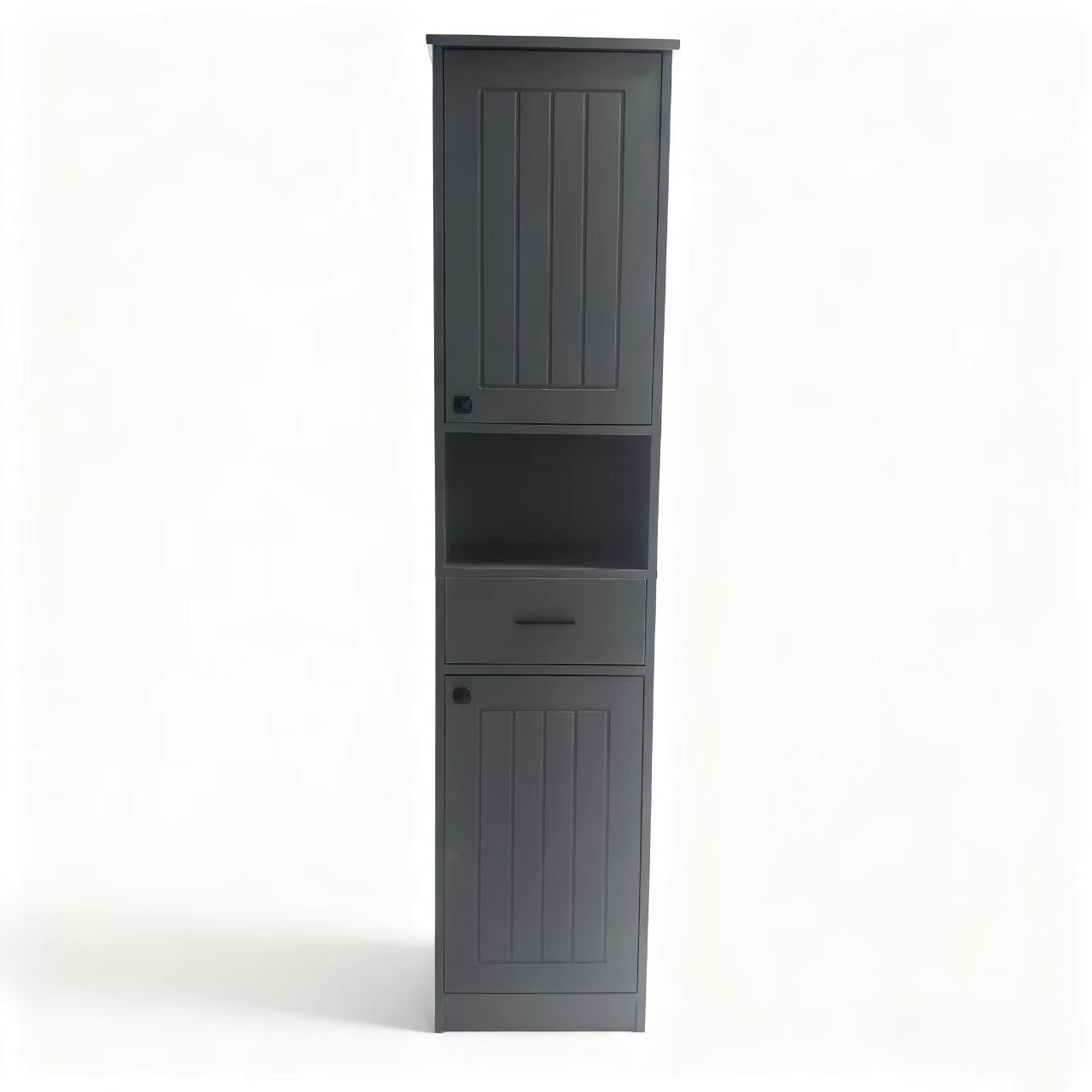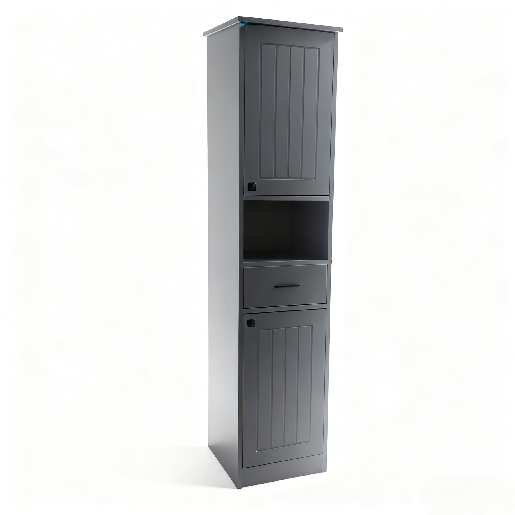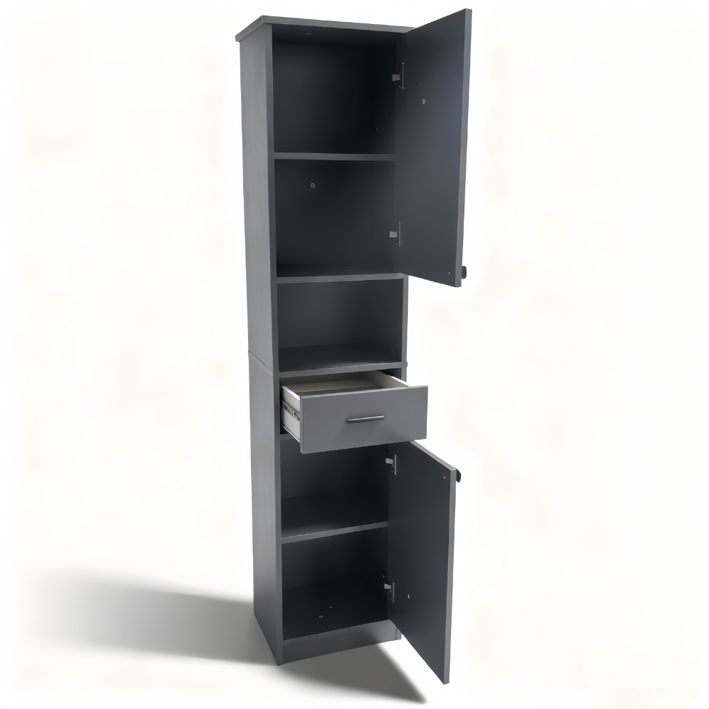 - The surface of this bathroom storage cabinet is made of high-quality painted MDF that is easy to wipe clean. Additionally, it comes with an anti-tip kit that secures the tall cabinet to the wall for added stability and security.