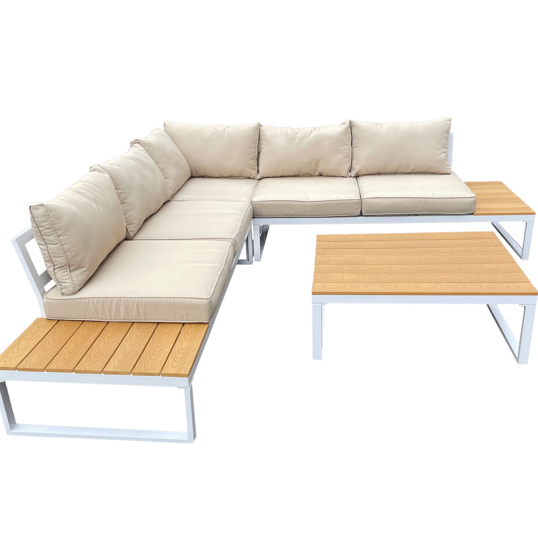 - This modern corner sofa set offers a stylish and comfortable retreat for your garden, terrace, or poolside area.