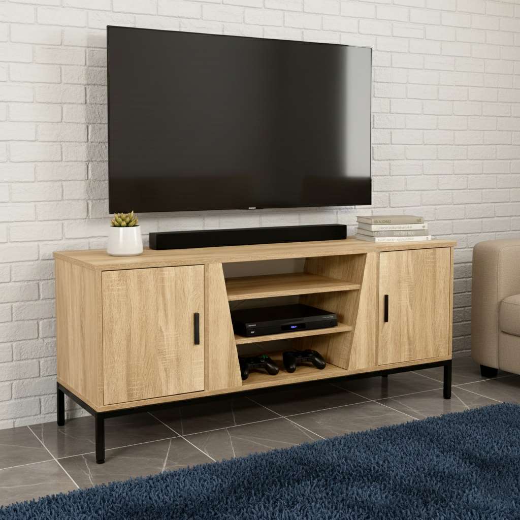 Generous width of 135 cm to accommodate large-screen TVs or multi-device setups.