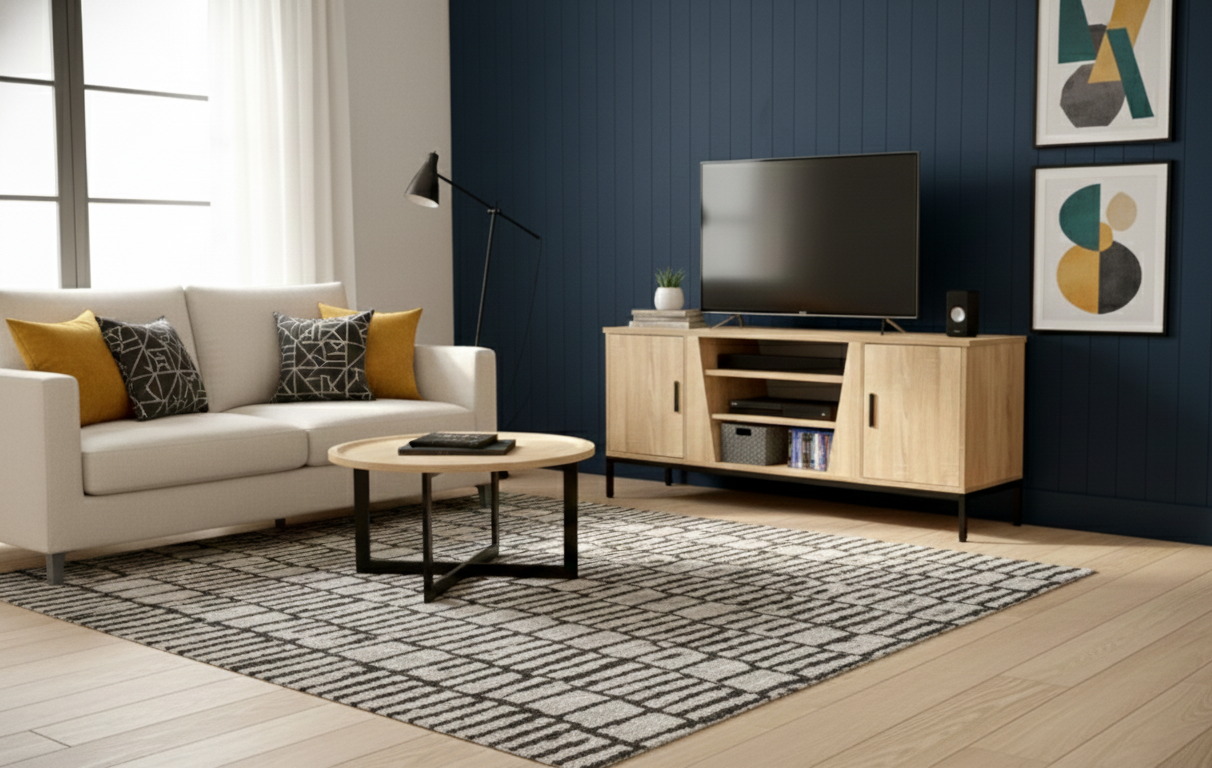 Depth of 385 mm allows for ample shelf space (set-top boxes, gaming consoles, soundbars) without adding bulk.